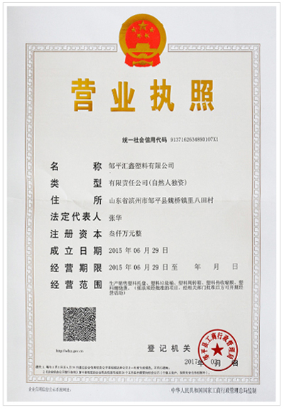 塑料托盤廠家匯鑫塑料營(yíng)業(yè)執(zhí)照