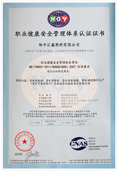 山東塑料托盤職業健康安全管理證書